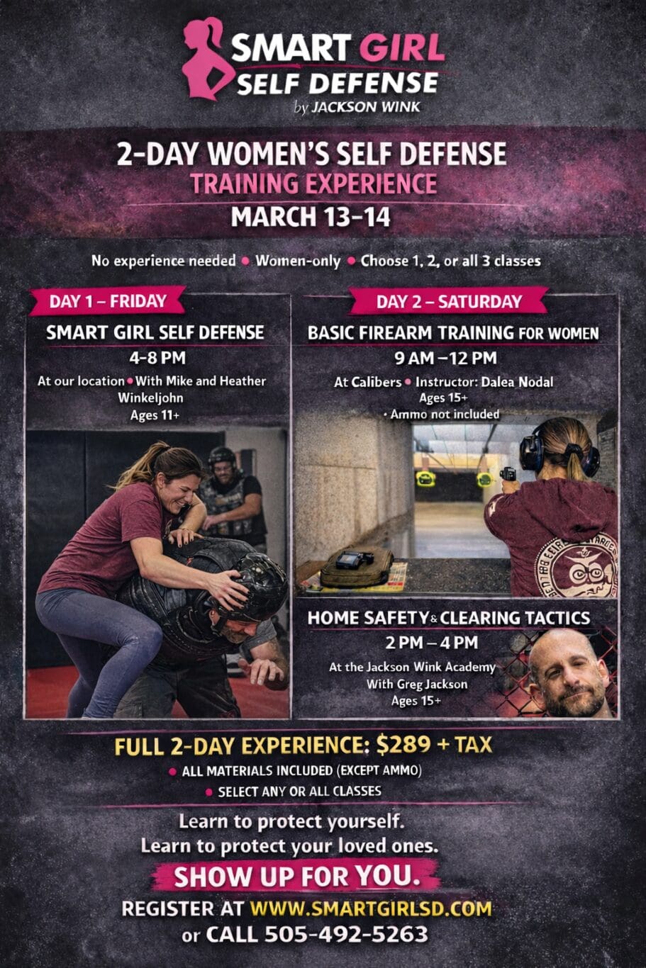 - Note: (refreshers for Smart Girl Self Defense are welcome at no charge for this class)