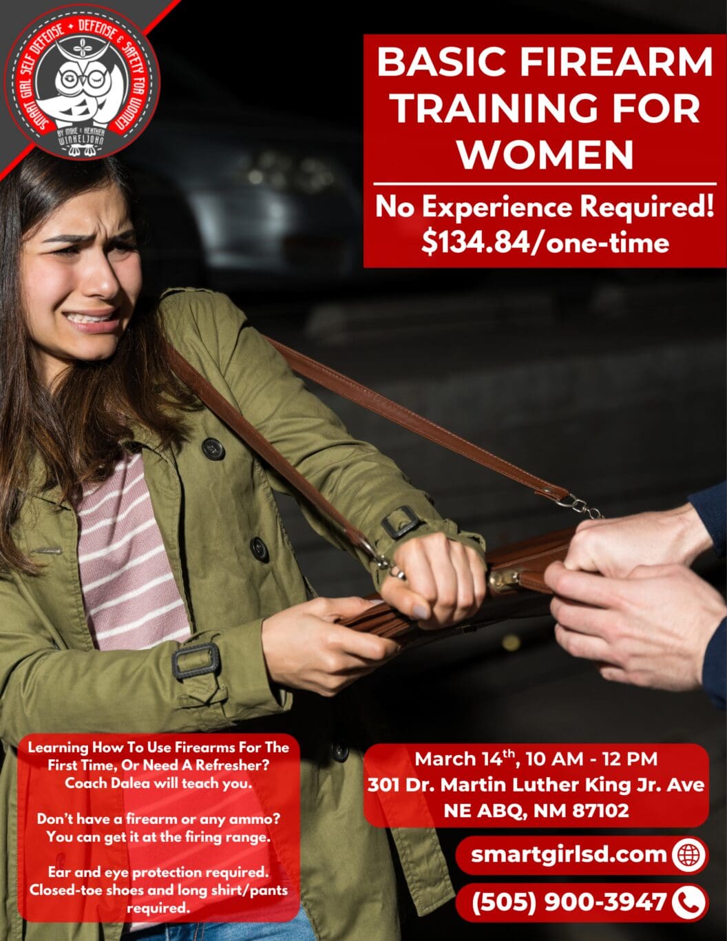This 3 hour class is designed for the woman who is considering owning a firearm or who may need a refresher on firearm basics. Learn in a comfortable class with other women and our instructor, Dalea, who happens to be a coach at Smart Girl Self Defense too. Dalea will put you at ease.